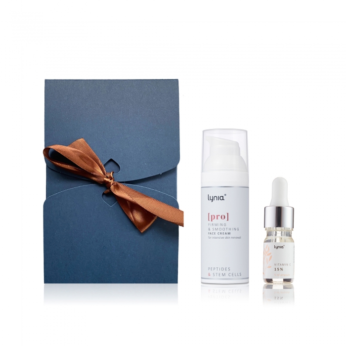 Zestaw Lynia Pro łączy dwa produkty premium – Krem ujędrniający i wygładzający do twarzy oraz Ampułkę z witaminą C 15%, które wspólnie poprawiają elastyczność, jędrność i koloryt skóry. Idealny prezent dla każdego, kto ceni skuteczne i nowoczesne formuły o potwierdzonym działaniu.